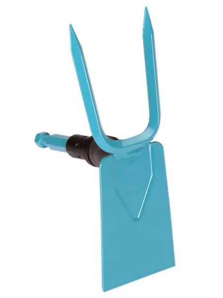 Ob Hacken, Jäten, Lüften, Rillenziehen oder Planieren – alles ist mit dem Gerät mit dem geraden Blatt auf der einen und den zwei Zinken auf der anderen Seite möglich.
