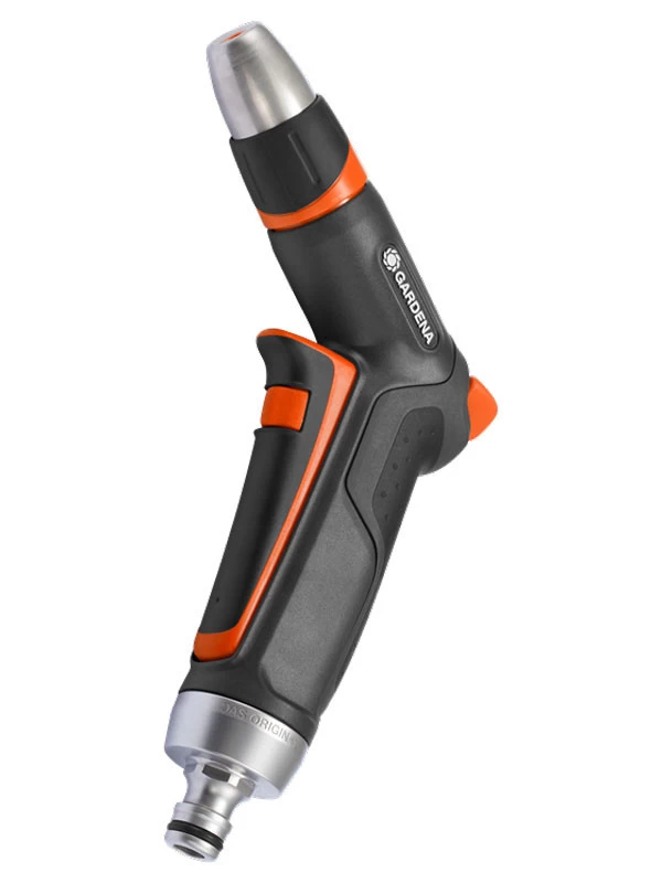 Die GARDENA Premium Metall-Spritze ist dank des Metallanteils sehr stabil. Zugleich liegt sie aber auch durch die griffigen Weichkunststoff-Elementen angenehm in der Hand.