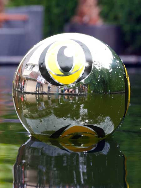 • durch die Spiegelung des silberfarbigen Treibballs