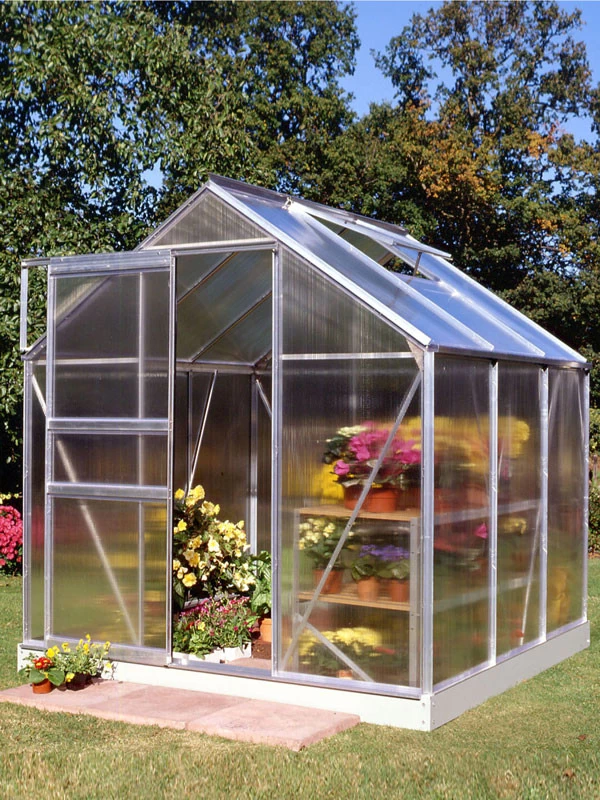 Hergestellt aus hochwertigem Aluminium. Damit das Gewächshaus stabil steht, empfehlen wir das optional erhältliche Fundament. Für eine optimale Belüftung bei heißen Tagen sorgt das Dachfenster.