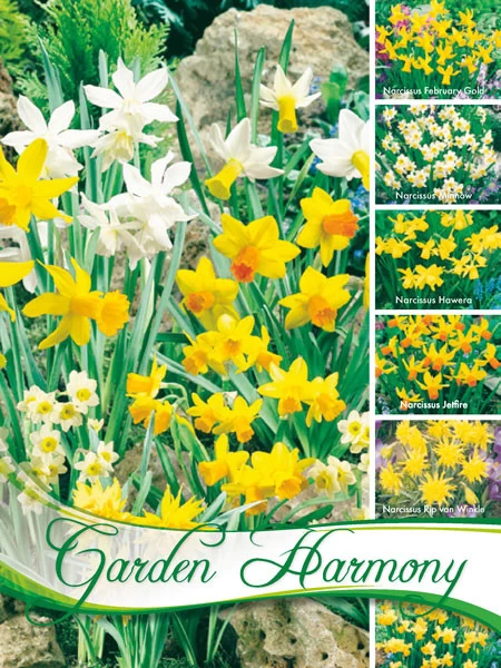 Das Sortiment besteht aus 5 Sorten Narzissen, die aufeinander abgestimmt sind.