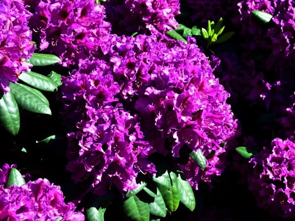 Blüte: Rhododendron ‚Azurro‘ gehört zu den späten Sorten. Sie blüht von Ende Mai bis Mitte Juni. Die Blütezeit liegt bei etwa 3 Wochen. Die dunkelviolette Blütenpracht bringt eine unglaubliche Leuchtkraft mit sich. In der Blütenmitte finden wir einen samtig rötlich-violetten Schlund mit schwarzen Punkten. Rhododendron ‚Azurro‘ ist sehr blühfreudig und zeigt bereits schon im Jungpflanzenstadium eine hohe Blühwilligkeit.