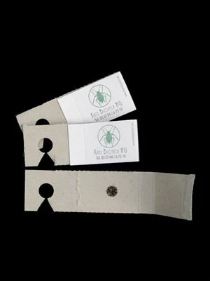 ♦ geliefert werden parasitierte Larven der weißen Fliege, aufgeklebt auf Pappkärtchen (10 Stück).