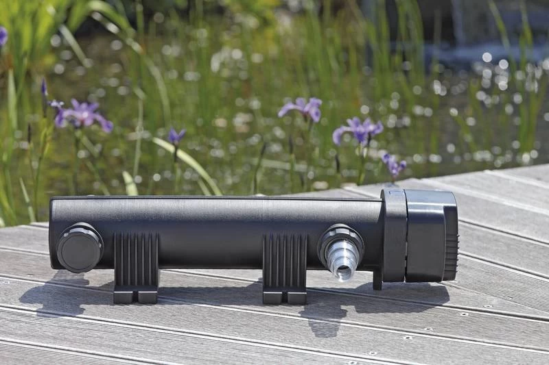 Der OASE Vitronic ist der ideale Einstieg in die Welt der UVC-Vorklärgeräte bis zu 55 W. Die durch das Gehäuse gepumpten Algen werden sicher bekämpft. Durch die optische Funktionskontrolle hat man die Funktion der UVC-Lampe stets im Blick.